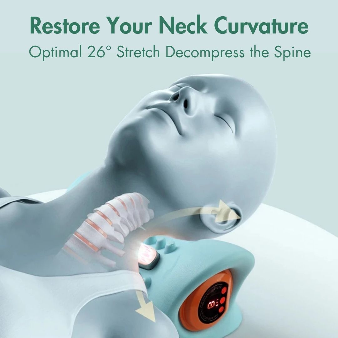 FisoRest combines cervical traction and high-frequency deep tissue vibration to realign your neck. The 26° stretch decompresses your spine, while the vibration mimics the benefits of exercise by relaxing muscles, improving circulation, and easing tension.