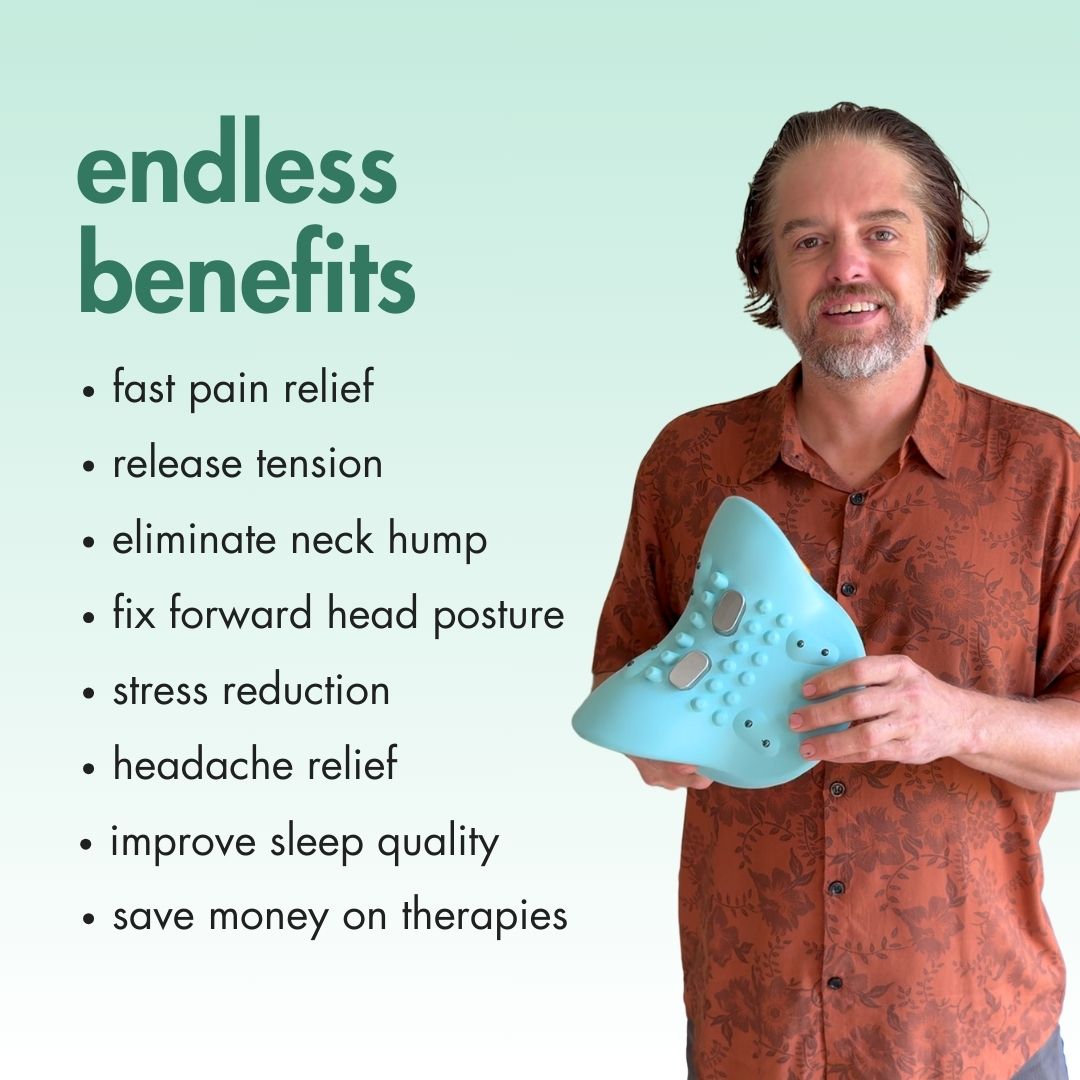 This helps release trapped nerves and relieves pressure from herniated discs, leaving you with a healthy neck—and a smile—forever.